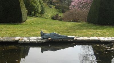 An abstracted and slender interpretation of woman with a bronze reclaimed engineered base . Base is an additional 30 cm high